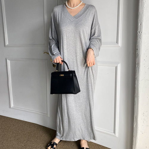 [옷자락]여성 빅사이즈 긴팔 롱가운 가을용 브이넥 원피스