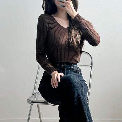 (new컬러추가/여리슬림핏) 치즈 슬림 브이넥 골지 니트 nt4327