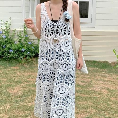 [썬쿠] 레이스 장식 브이넥 슬리브리스 원피스(SN71D5OPS39X)