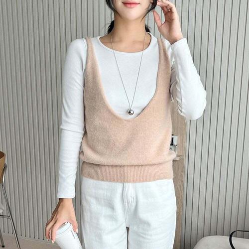 [셀럽하우스]여성 QHCX5965 브이넥 끈 나시 크롭 니트 레이어드 조끼 베스트