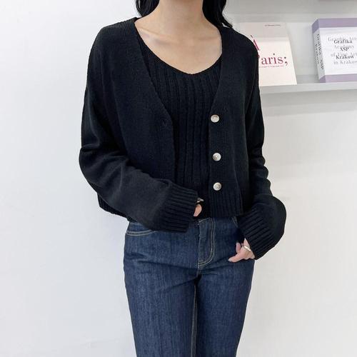 블레오 여자 브이넥 골지 나시 니트 가디건 세트 DM2512161546