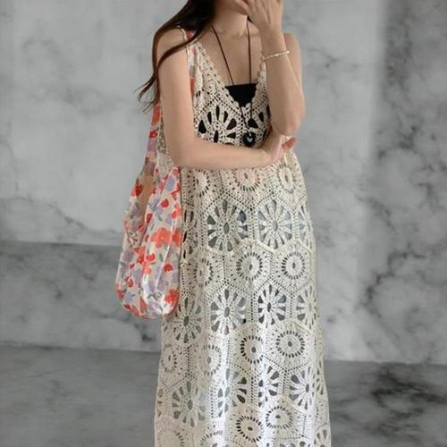 [셀럽하우스]여성 ZQCY4823 끈나시 브이넥 패턴 원피스