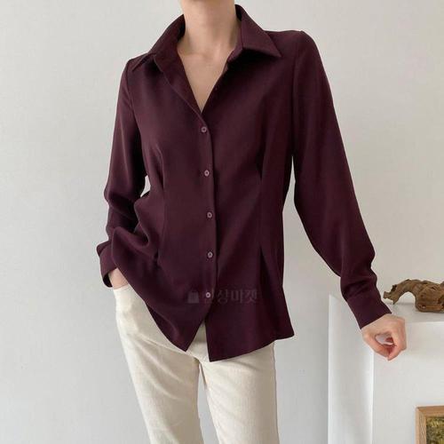 [옷자락]여성 롱슬리브 V넥 심플 출근룩 블라우스