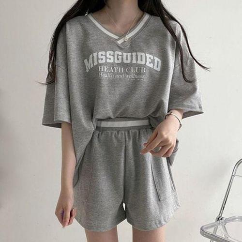 [에이치플러스몰]브이넥 데일리 추천 반팔티 밴딩반바지 꾸안꾸