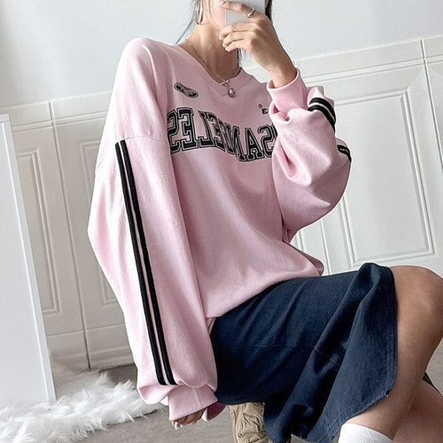플러리싱 / 트렌디 배색 라인 레터링 브이넥 맨투맨 플러리싱