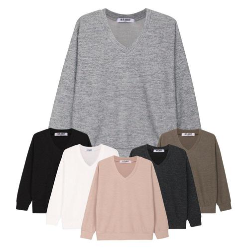 [모로엠]맨즈 베이직 리브드 무지 브이넥 맨투맨 5C-KN-Q011