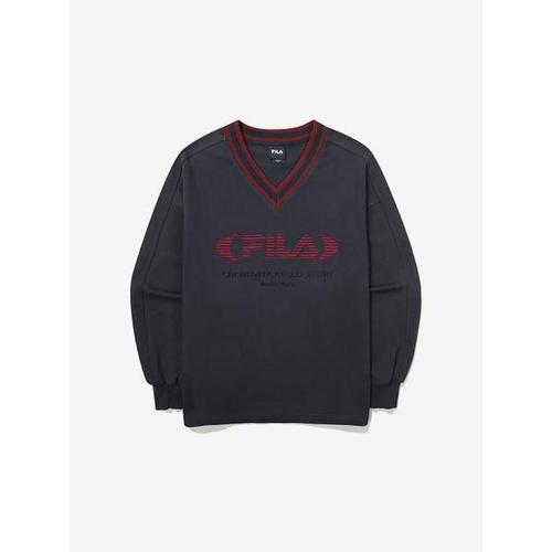 [휠라]빅로고 면혼방 V넥 맨투맨 (FS2POF3155F_BLK)