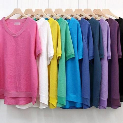 데일로엔 여성 여름 브이넥 오버핏 빅사이즈 반팔 티셔츠