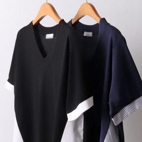 반팔티 의류 배색 빅사이즈 306O408S 사선 브이랩