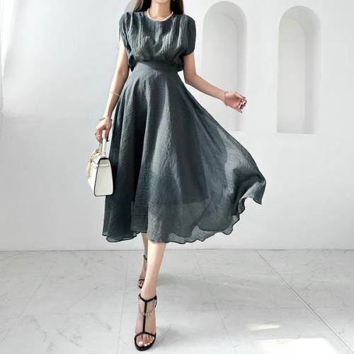 [다잇템]여자 비침 치마 블라우스 슬릿 세트 (13155350A)