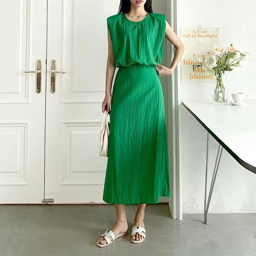 [탱커스]밑단 스트링 블라우스 밴딩 스커트 셋업 (TV2OP065L0)