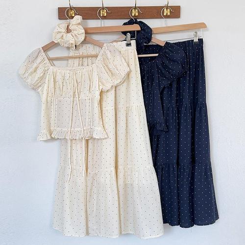 [옷자락] 여성용 도트 퍼프 블라우스와 캉캉스커트 세트