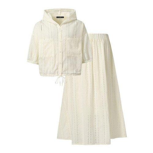 [나인식스뉴욕]펀칭 블라우스 롱 스커트 셋업 (NP2OW024L0)