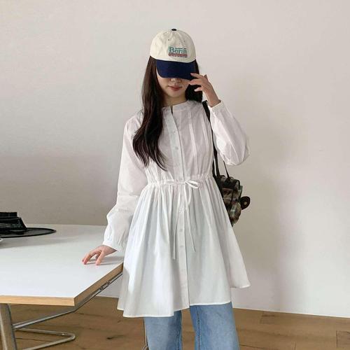 [라일리여성의류] Rly 미니멀한 올블랙 칼라 허리끈 셔츠칼라우먼 롱라인