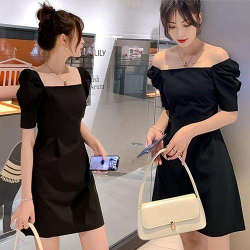블랙 미니 드레스 여자 오프숄더 스퀘어넥 벌룬 클럽 WC79C0A