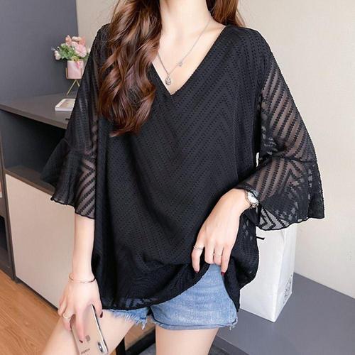 [블랙퀸]차프린 레이스 여름소재 반팔블라우스 blk003474