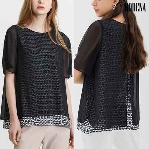 [H2. 모데나]★인기특가★ 모데나 패턴 레이어드 쉬폰 블라우스 _쉬폰블랙