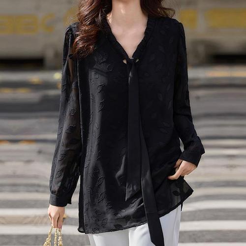[블랙퀸]시스루소매 빅사이즈 리본 블라우스 blk003510