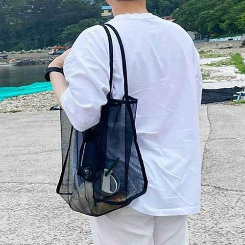 [BZIG294N_49]메쉬 캐쥬얼룩 쇼퍼백 블랙 에코백 숄더백