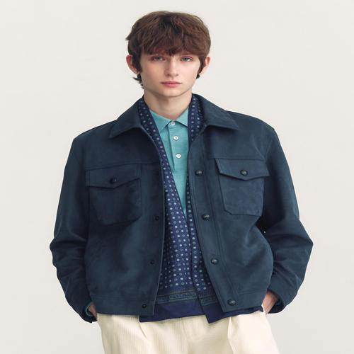 헤지스 남성 터콰이즈 블루 페이크 스웨이드 트러커 (HZJU4D677T2)