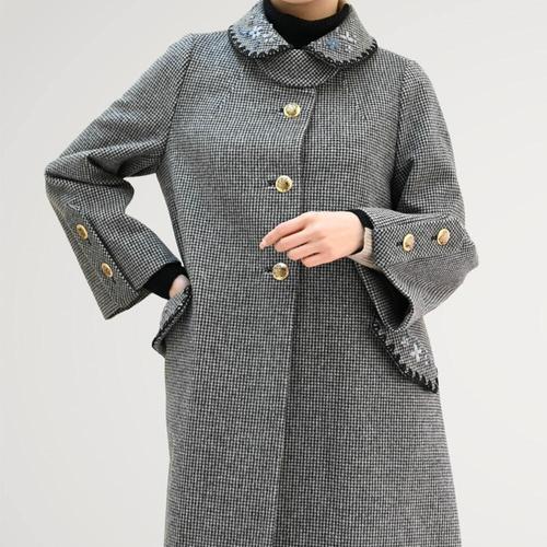 [비꼴리끄]울 체크 카라 자수 롱코트 B254WL3060