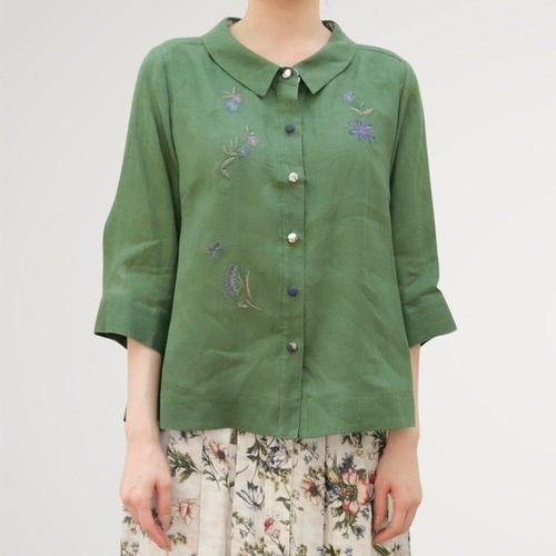 [비꼴리끄]린넨 라운드 카라 자수 블라우스 B252WB3181