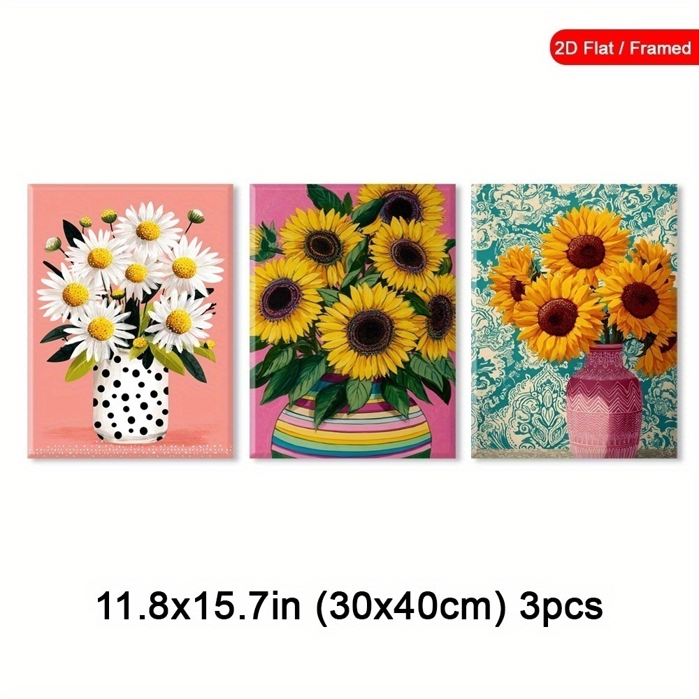TEMU 3개 세트 벽걸이 아트, 생동감 넘치는 컬러 포스터, 클래식 뷰티 프린트 캔버스 액자, 펫랄 매력 캔버스 프린트, 트렌디한 거실·침실·모던 홈오피스 인테리어 소품, 2D 플랫 액자 포함 [2D 평면]