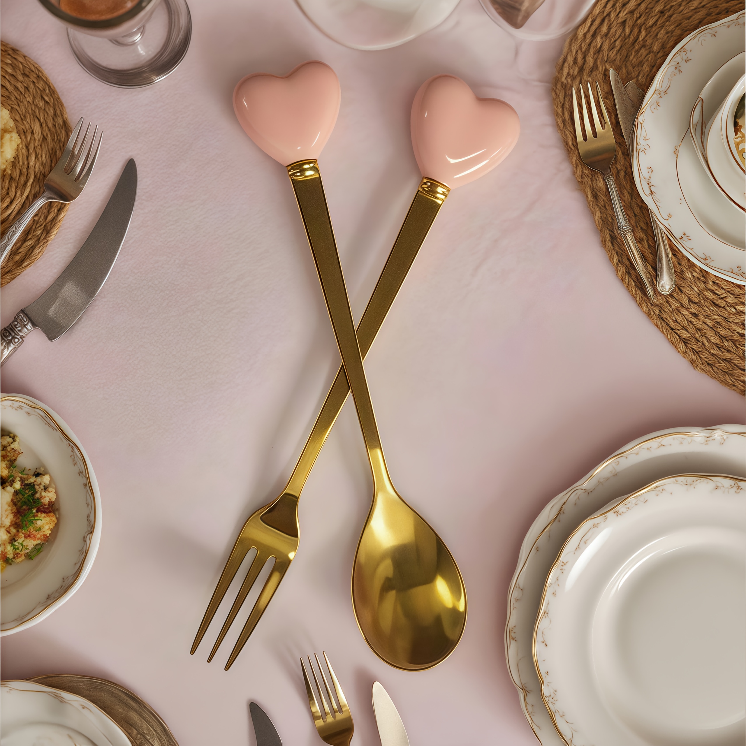TEMU 2개 세트 럭셔리 골드 도금 디저트 포크 & 스푼 - 세라믹 핸들, 14cm/11cm, 우아한 디자인의 애프터눈 티, 결혼식 및 파티용, 내구성 있는 스타일리시 컷러리, 고급스러운 테이블웨어