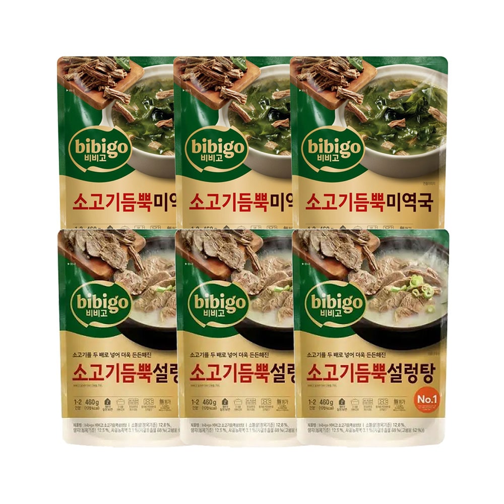 비비고 소고기 듬뿍 미역국 460g x3개+소고기 듬뿍 설렁탕 460g x3개