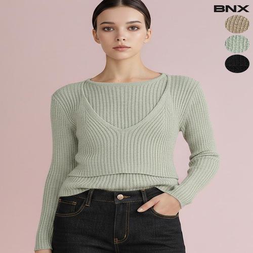 [비엔엑스]여성 크롭 뷔스티에 골지 풀오버 니트