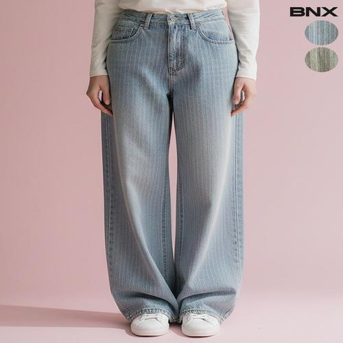 [비엔엑스][55-77] 여성 스트라이프 워싱 데님 팬츠