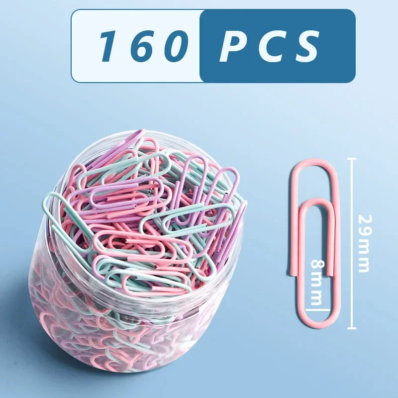 160 개 컬러 종이 클립 사무용품 종이 클립 대형 파일 책갈피 종이 클립 주최자 편지지 스테인레스 스틸