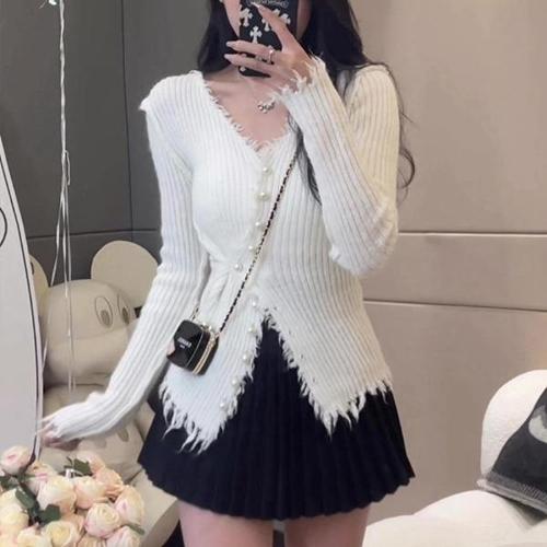[신상오픈런]|KDJ2AA0|마왜이 짧은 비즈펄 보들 롱슬리브 가을 여성 가디건 V넥_18158715_597559