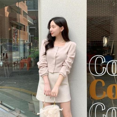 한정수량 쪼꼬마미 오로라 여자 브이넥 진주단추 니트 숏 가디건