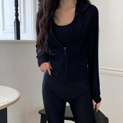 [베이직엘르][인기제품] 베이직엘르 여성인 집업 래쉬가드 세트 체형커버 수영복 비치룩 BEL-T205P