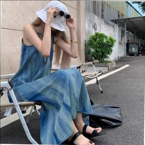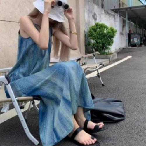 [에이치플러스몰]여름 인기 마린 비치룩 슬리브리스 감성 끈나시 원피
