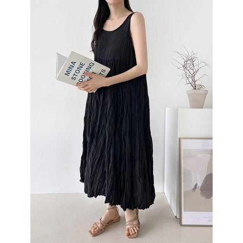 [샵앤]여성 라운드넥 주름가공 민소매 휴양지 비치룩 원피스 NYS-WDR-4637-블랙