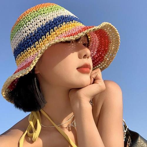 [다잇템]여자 비치룩 라탄 SS 무지개 벙거지 벙거지 (18040959)