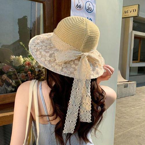 은창)리본 써클 데코 밀짚 모자 여름 비치 선캡 여성 밀집 밀짚 벙거지 여름 면