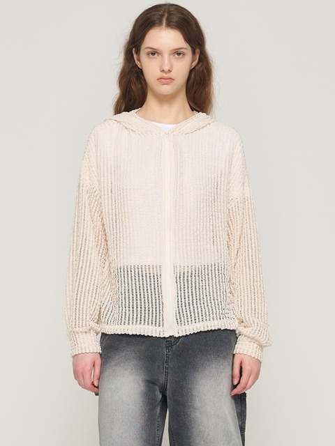 [카고브로스] 메쉬 비치 후드 집업 니트 (아이보리)