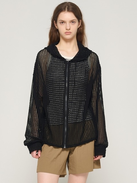 [카고브로스] 메쉬 비치 후드 집업 니트 (블랙)