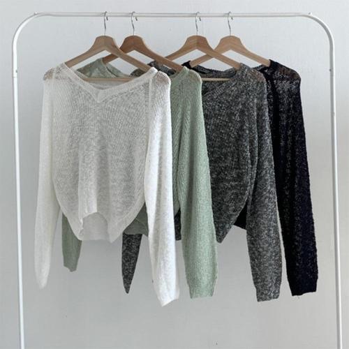 여성 스웨터 비침 V넥 롱슬리브 비키니 커버업
