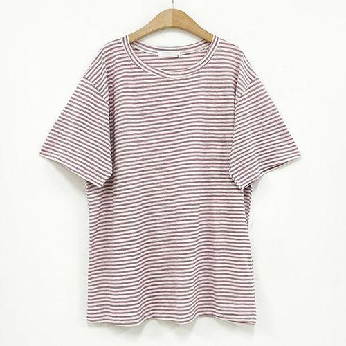 [에이치플러스몰]루즈핏 빅사이즈 줄무늬 반팔 티셔츠