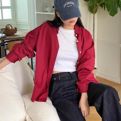 F007582_뒷단추 포인트 루즈?v 롱남방 셔츠 블라우스 간절기 봄가을 루즈핏 빅사이즈 긴팔 살안타 오버핏