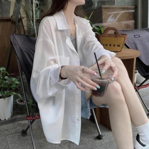 [다잇템]여자 롱남방 세미시스루 빅사이즈 화이트 셔츠 (9655860A)