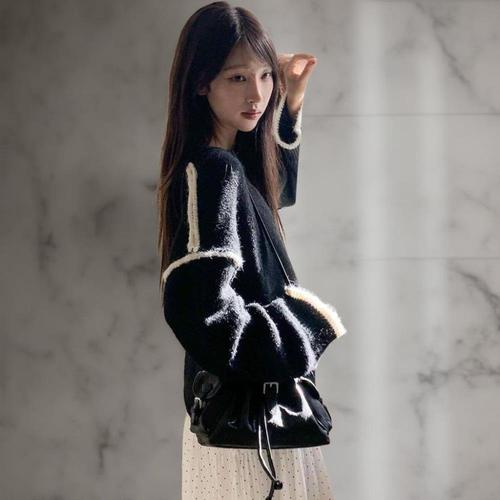 [다잇템]여성 가을겨울 콘트라스트 빅사이즈 니트