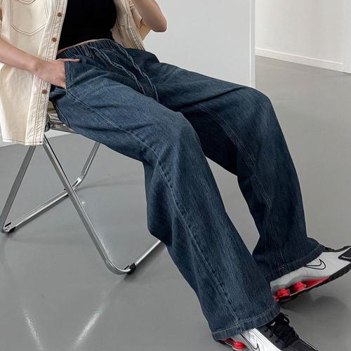[옷자락] 여성 루즈핏 와이드 스트랩 청바지 빅사이즈 여름용