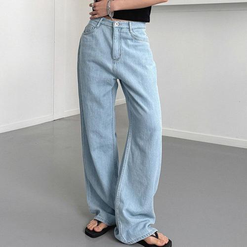 [에이치플러스몰]여성 여름 빈티지 연청 와이드 빅사이즈 찢청팬츠