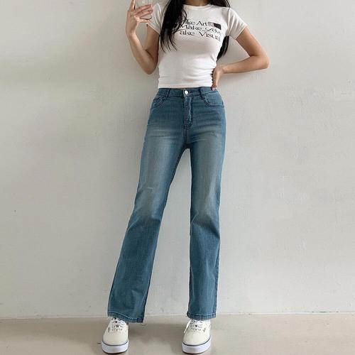 [옷자락]여자 여름데님 슬림 세미부츠컷 워싱 빅사이즈 청바지