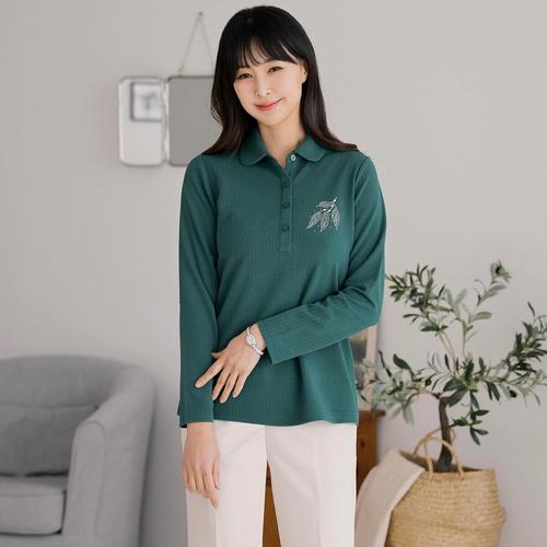 [드리다]드리다 여성 봄 핫픽스 엠보 빅사이즈 긴팔 카라 티셔츠 중년여성 엄마옷 마담옷 할머니옷